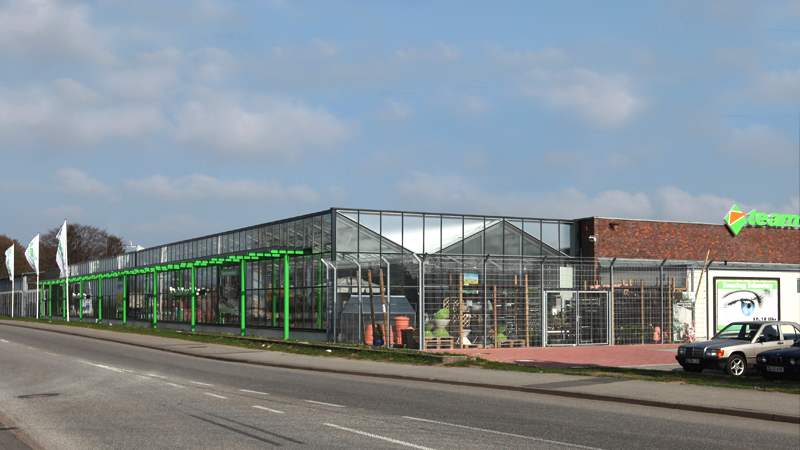 Umbau und Erweiterung eines bestehenden Baumarktes mit 6000 m² Nutzfläche bei laufendem Geschäftsbetrieb. Neubau einer zentralen Eingangs- und Ausstellungshalle als Bindeglied zwischen zwei vorhandenen Baukörpern und einem Verkaufsgewächshaus mit 650 m² Nutzfläche.